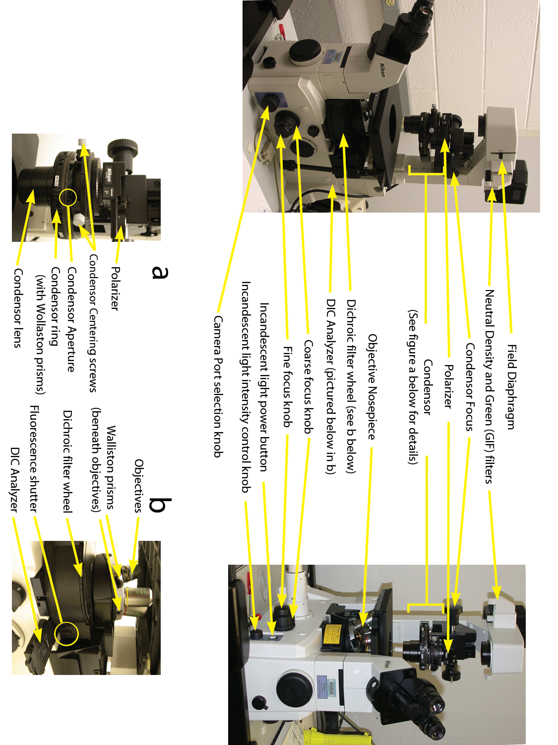 - Fluorescence cube is out (Choose "ND" at 1 or 32) on the somewhat mouse like