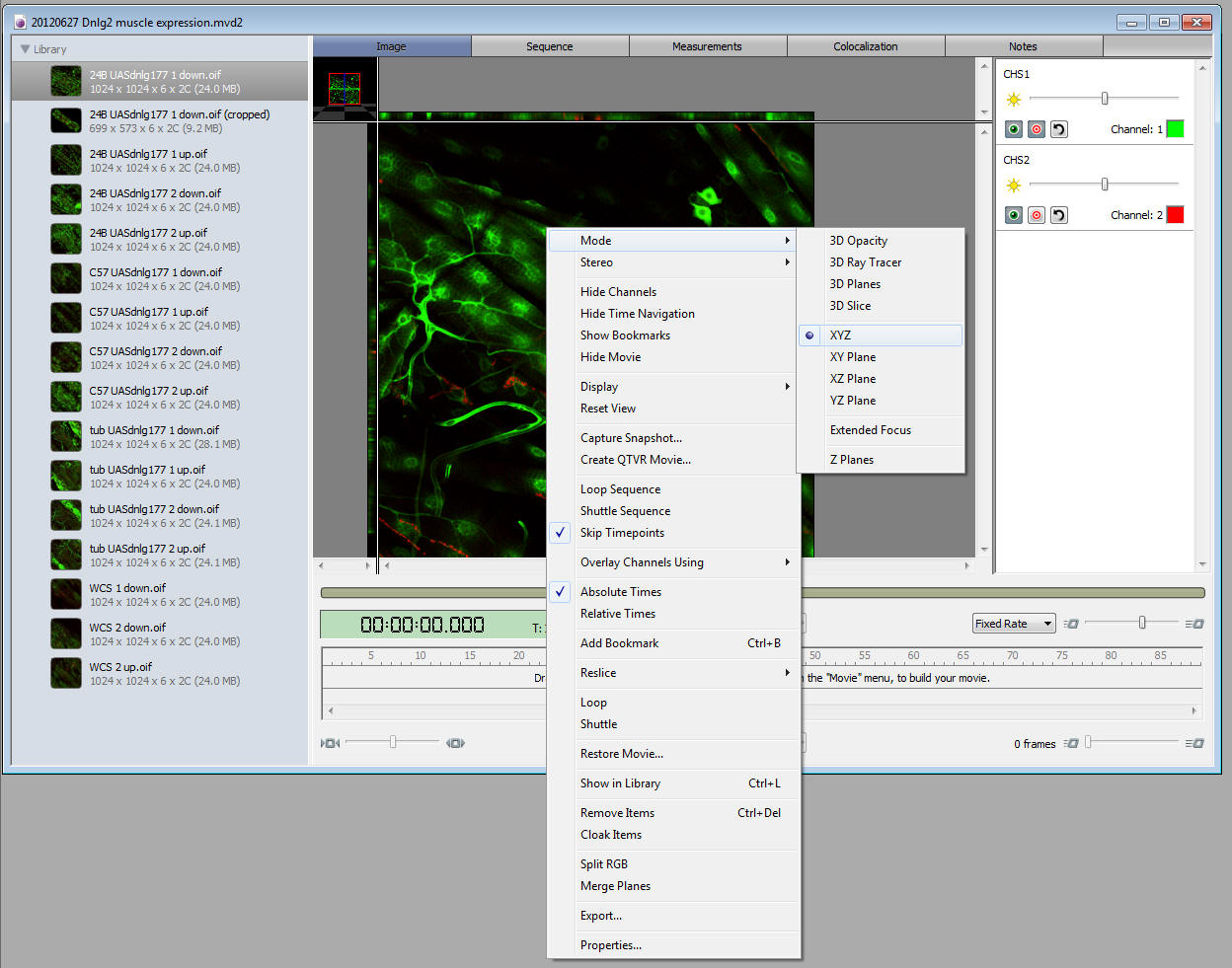 (usually usually "Channels, then Z-series, then time) and press OK